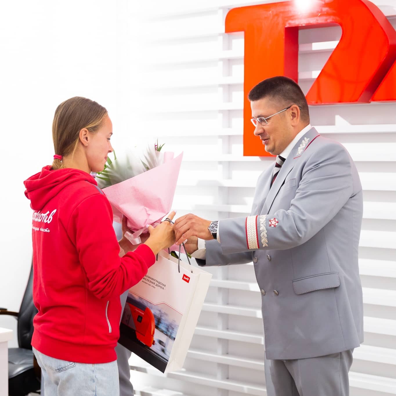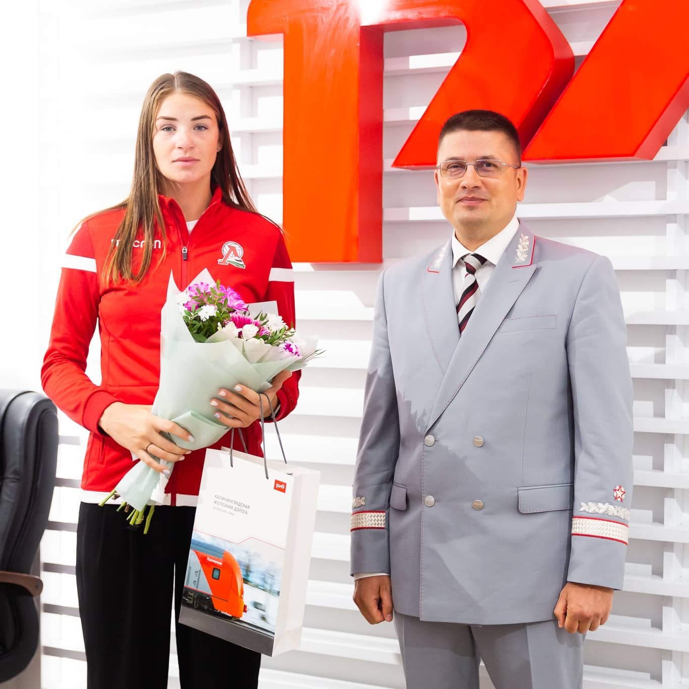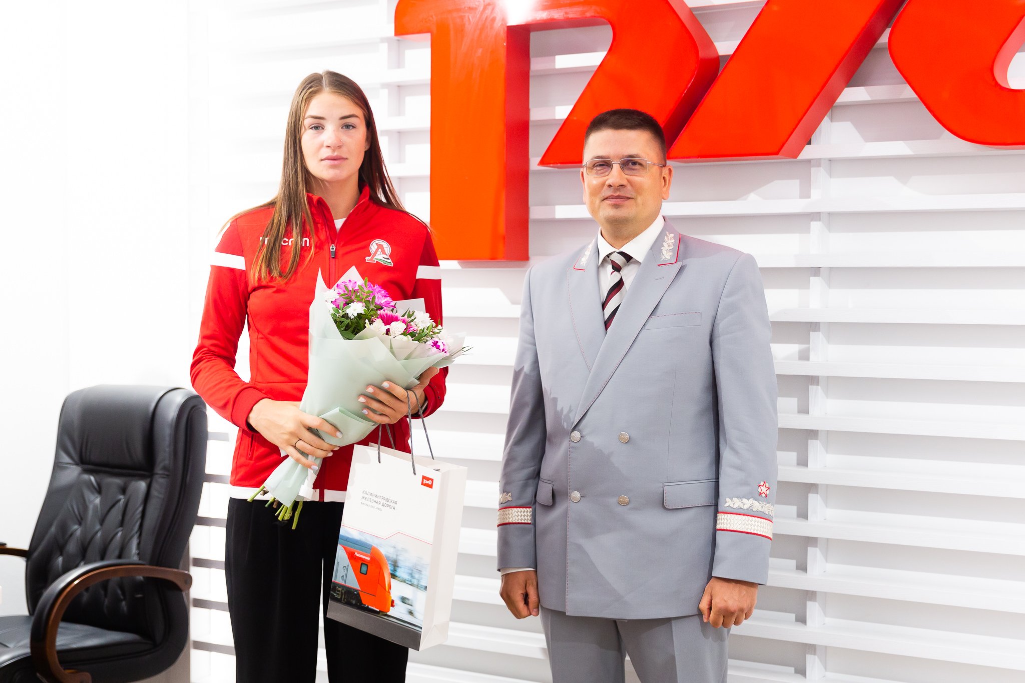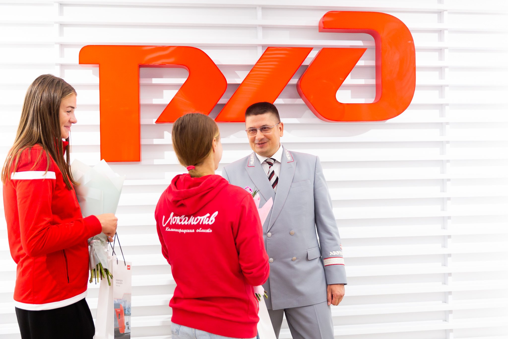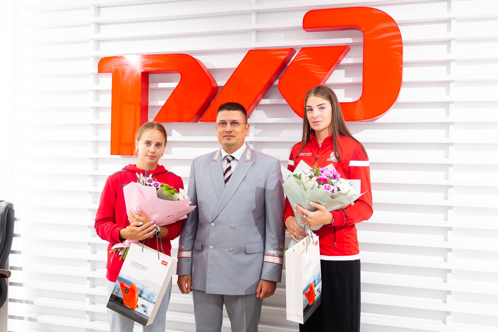 Волейболистки пляжной команды «Локо» Мария Бочарова и Мария Воронина встретились с начальником Калининградской железной дороги Сергеем Сапегиным