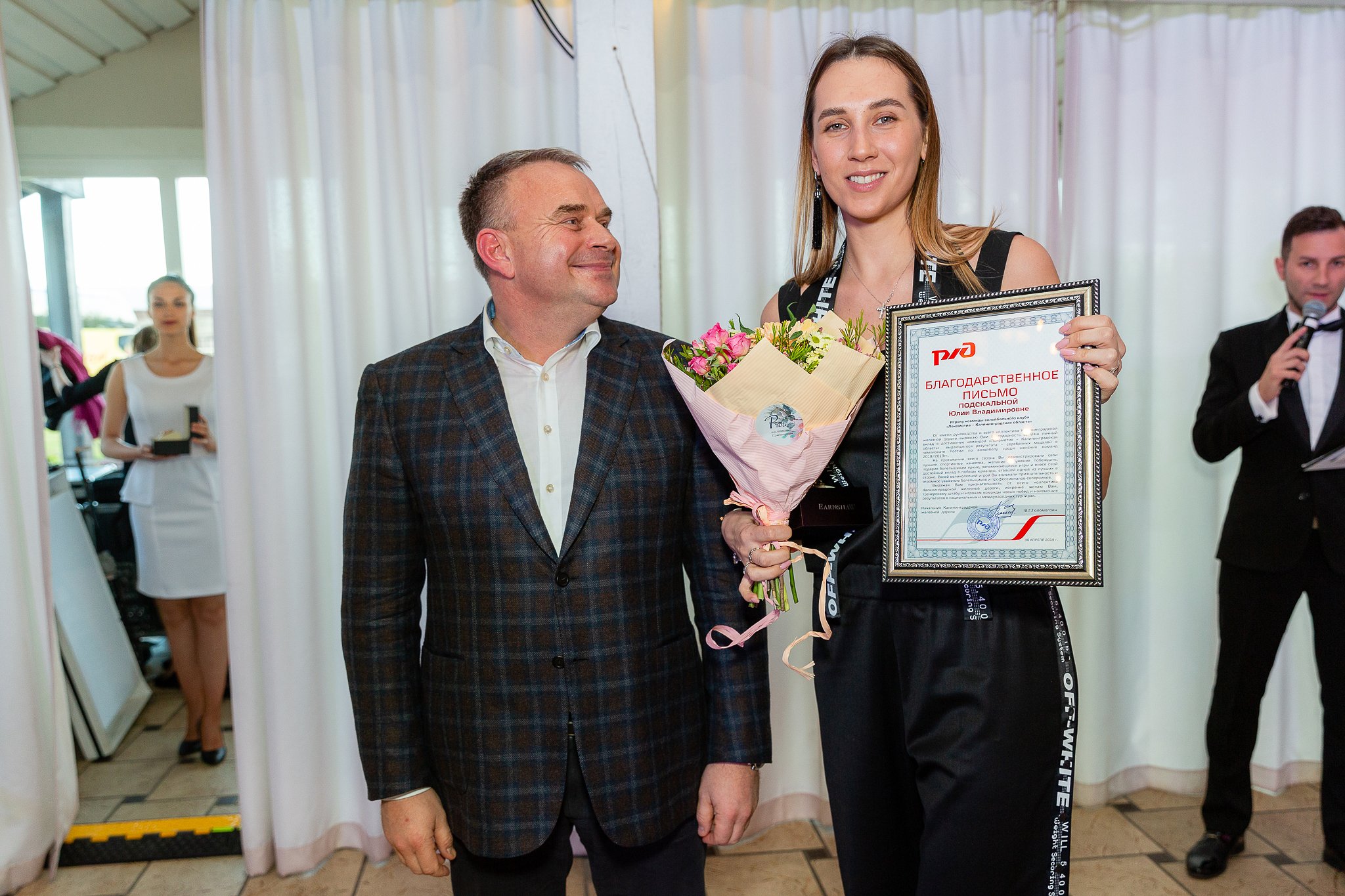Праздничную программу для праздничного вечера подготовили артисты Дома культуры железнодорожников. Их выступление добавило всей команде и гостям мероприятия настроения. Отличное получилось завершение такого непростого, но успешного первого сезона женского волейбольного «Локомотива» (Калининградская область).