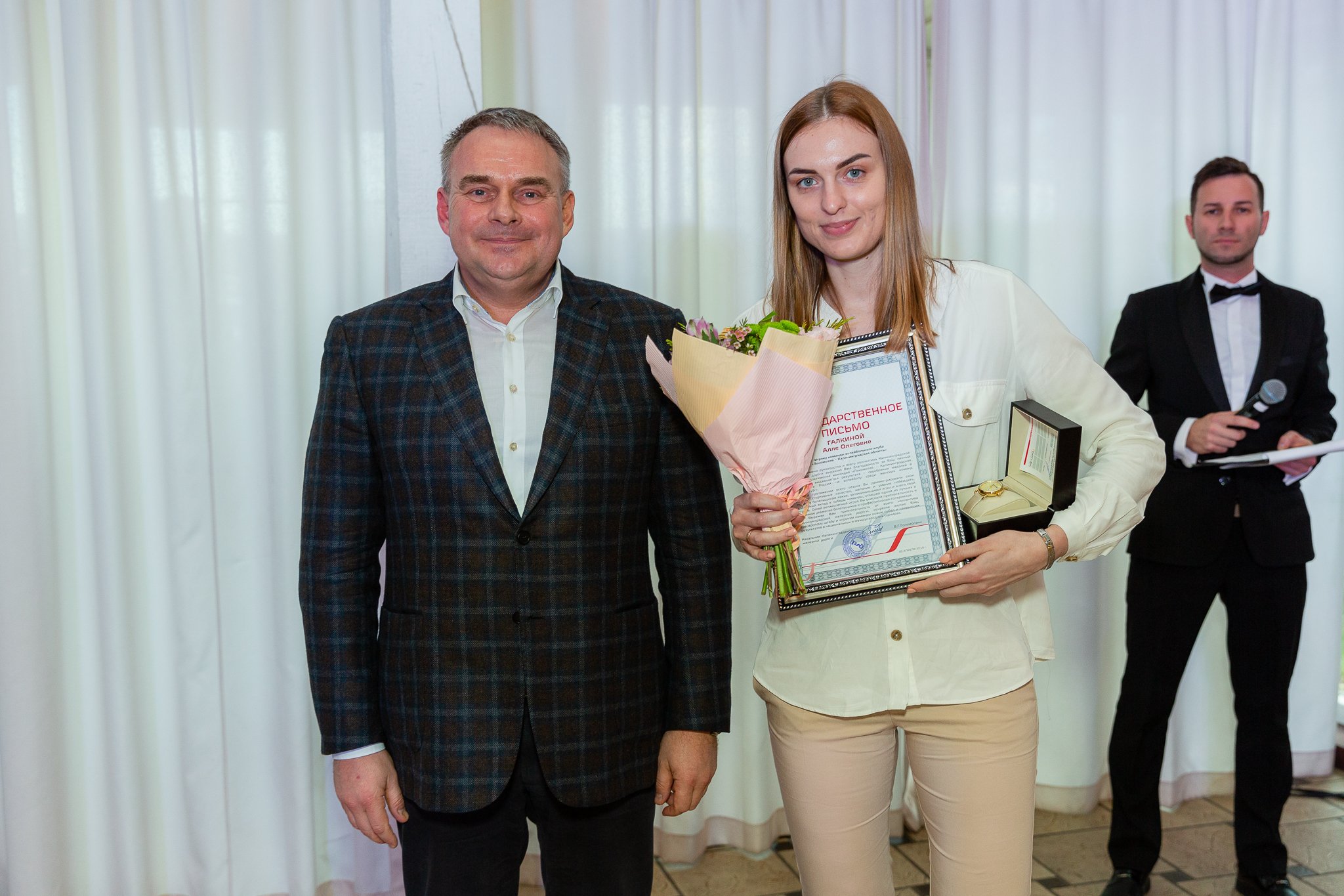 На торжественном вечере, посвященном завершению сезона, начальник КЖД подарил игрокам и тренерскому штабу нашей команды именные часы. Подарки так понравились девушкам, что они сразу же надели их на руки. Так же Виктор Голомолзин вручил всей команде Благодарственные письма.
