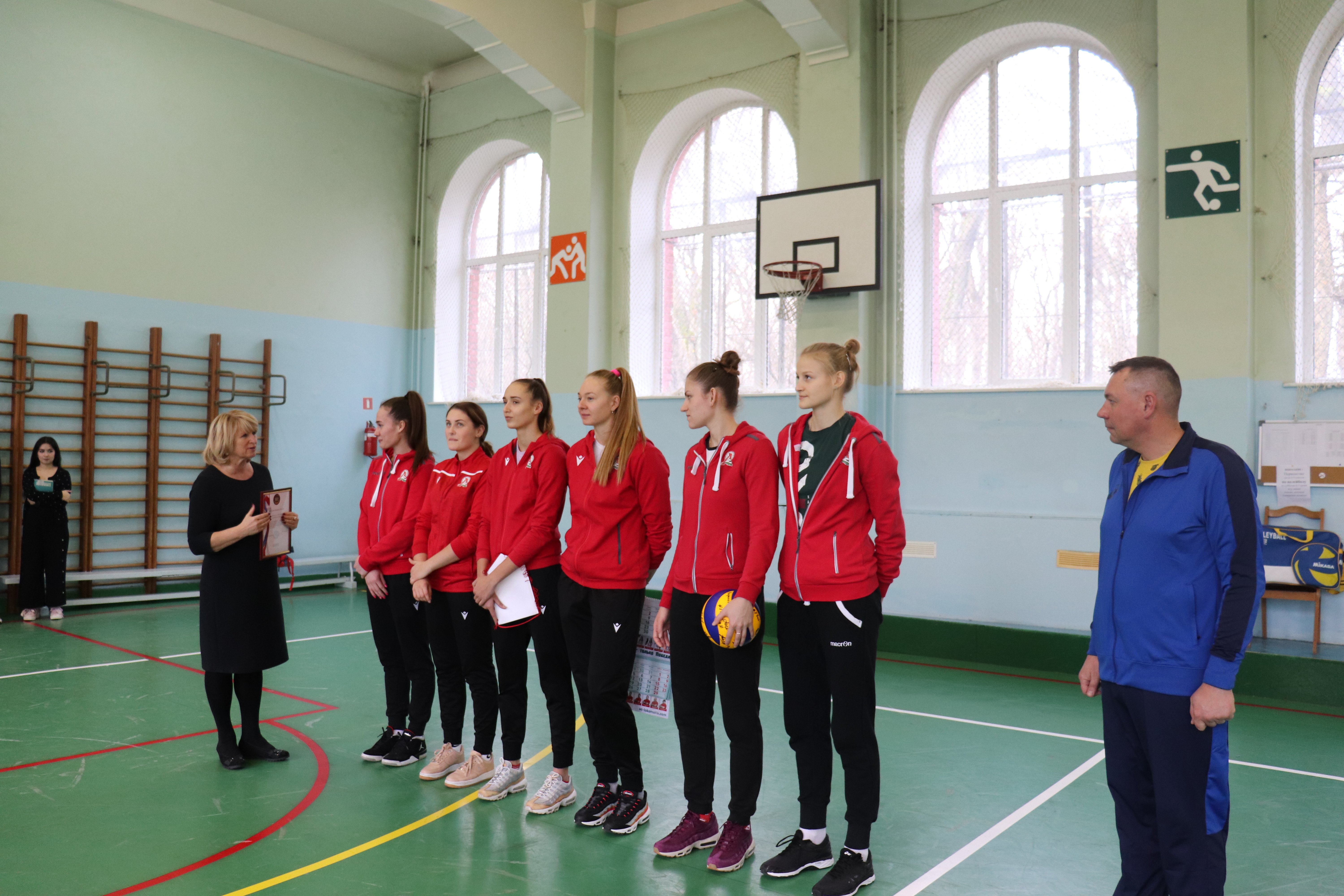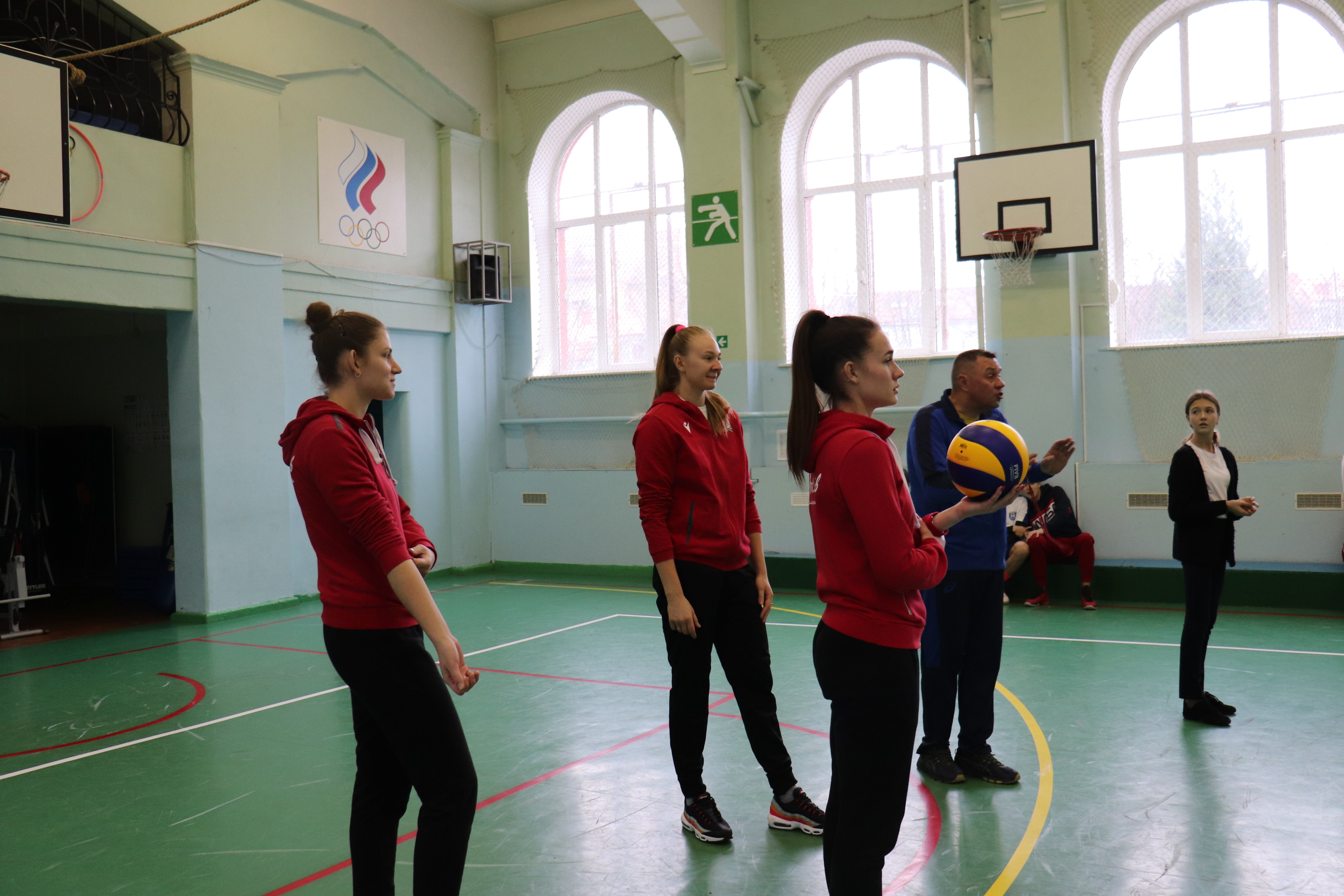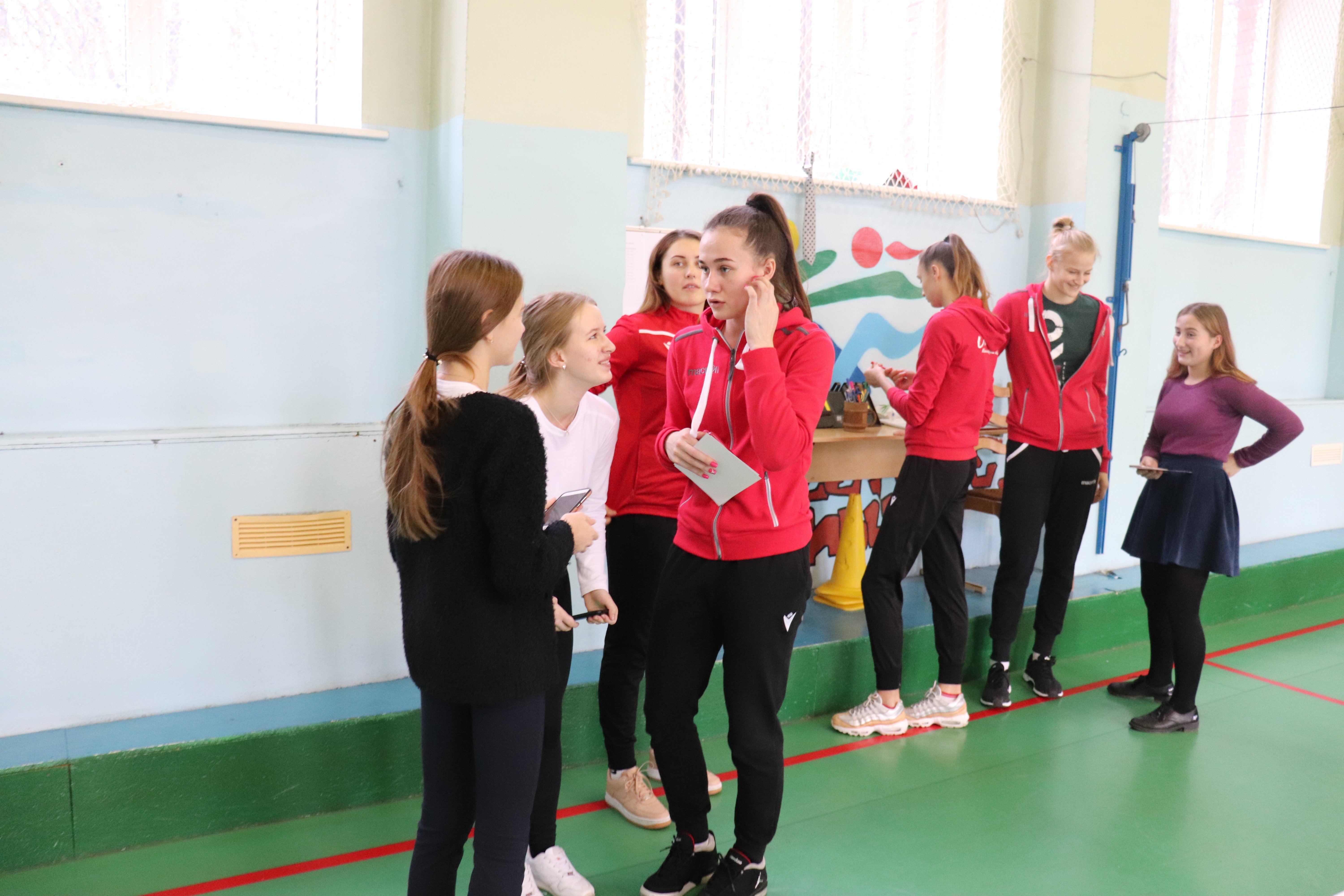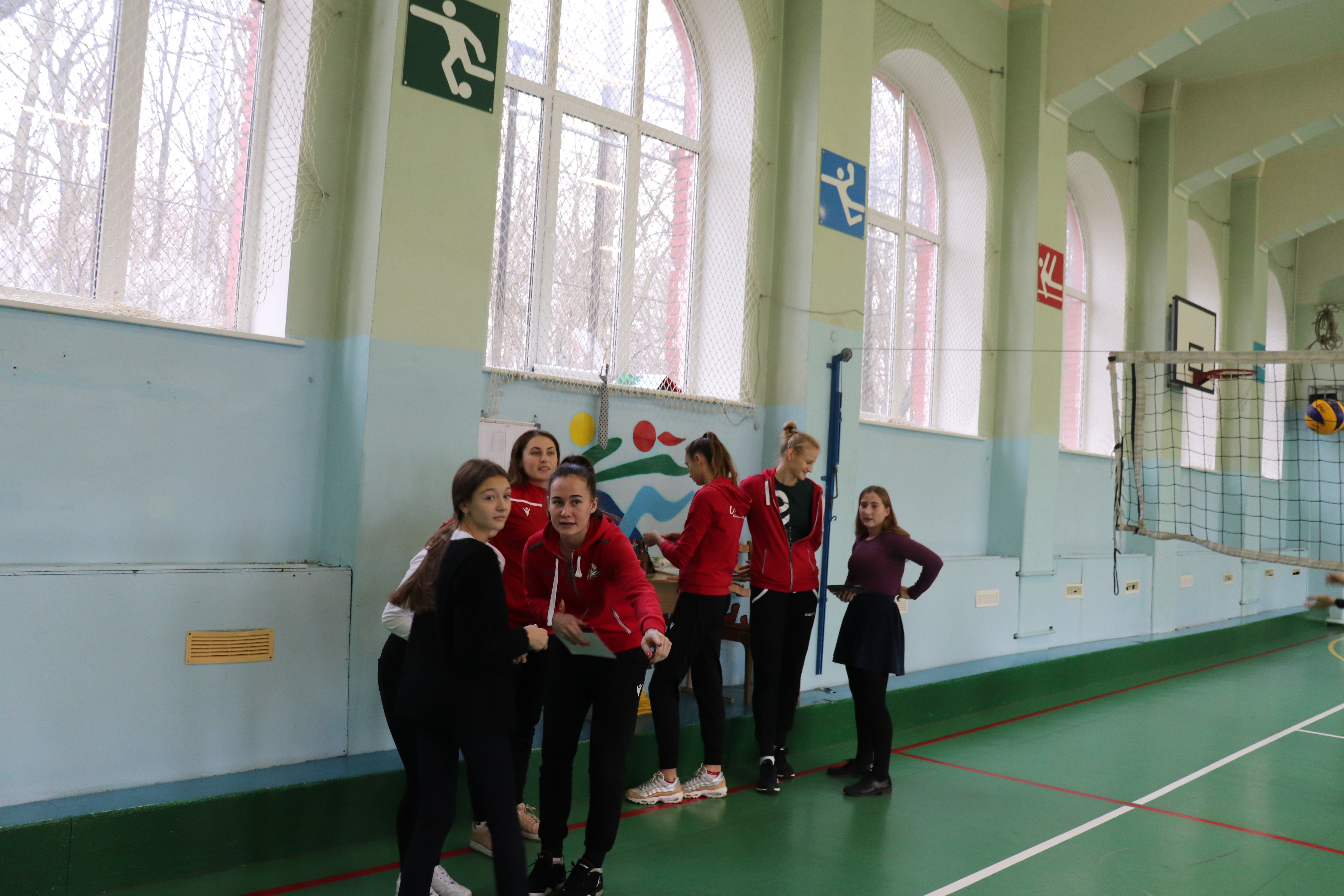 Приветливые хозяева организовали для наших девушек небольшую экскурсию по гимназии, угостили кофе, а потом был мастер-класс от игроков «Локомотива» для учеников, увлекающихся волейболом. Таня, Рита и Настя показали мальчишкам и девчонкам, как надо правильно действовать на подаче. Даша, Вика и Лера продемонстрировали, как надо принимать мяч. А потом был и волейбол.