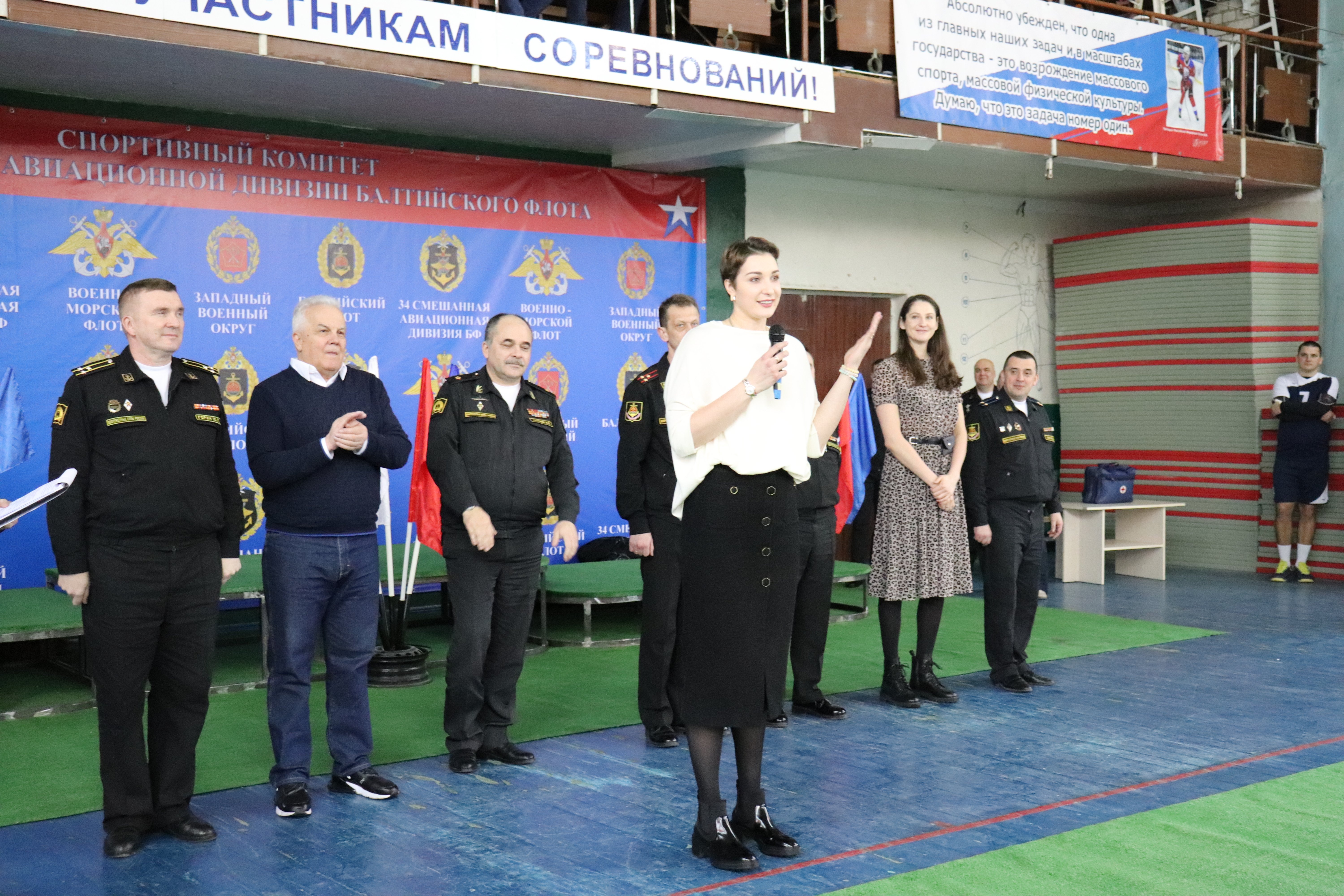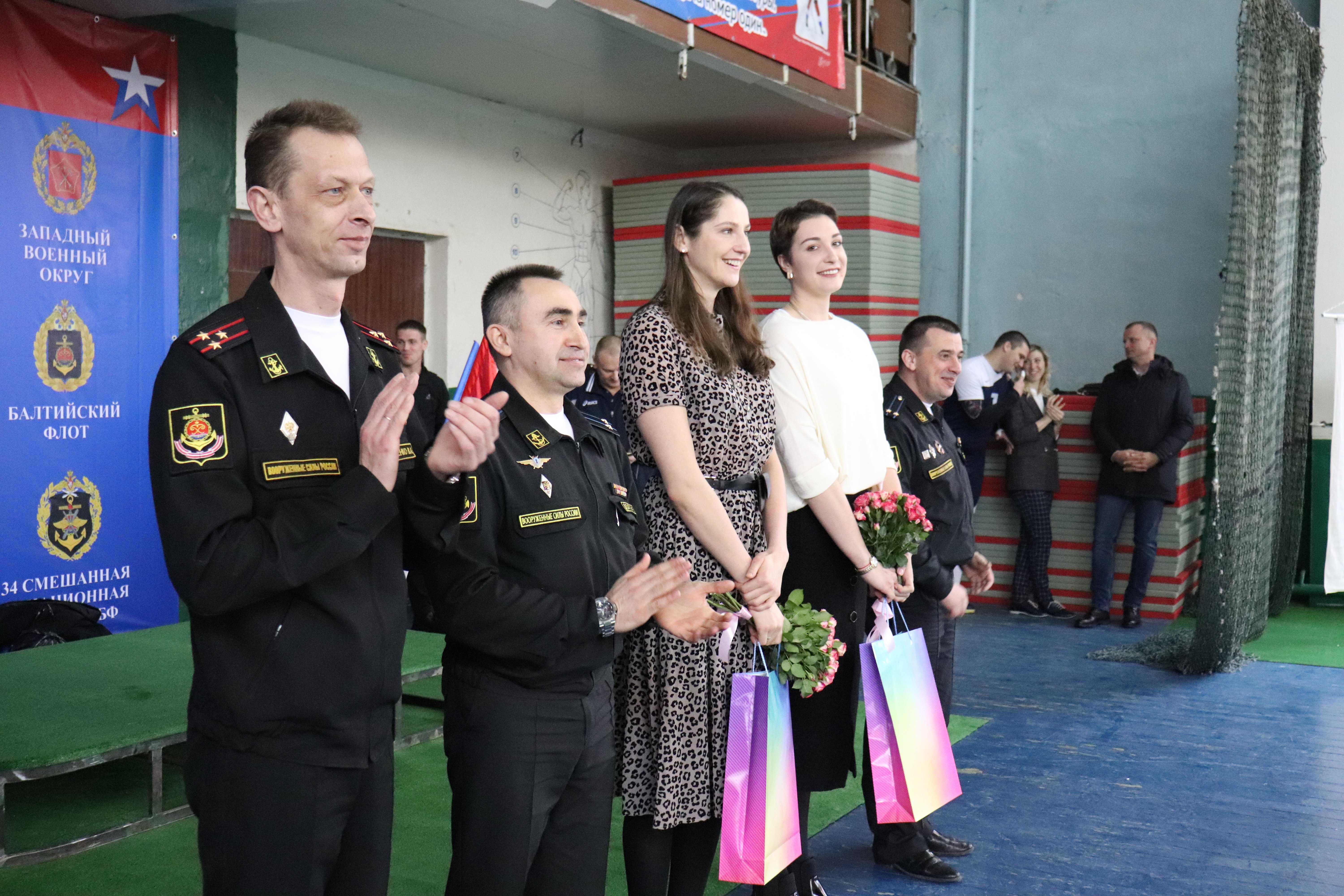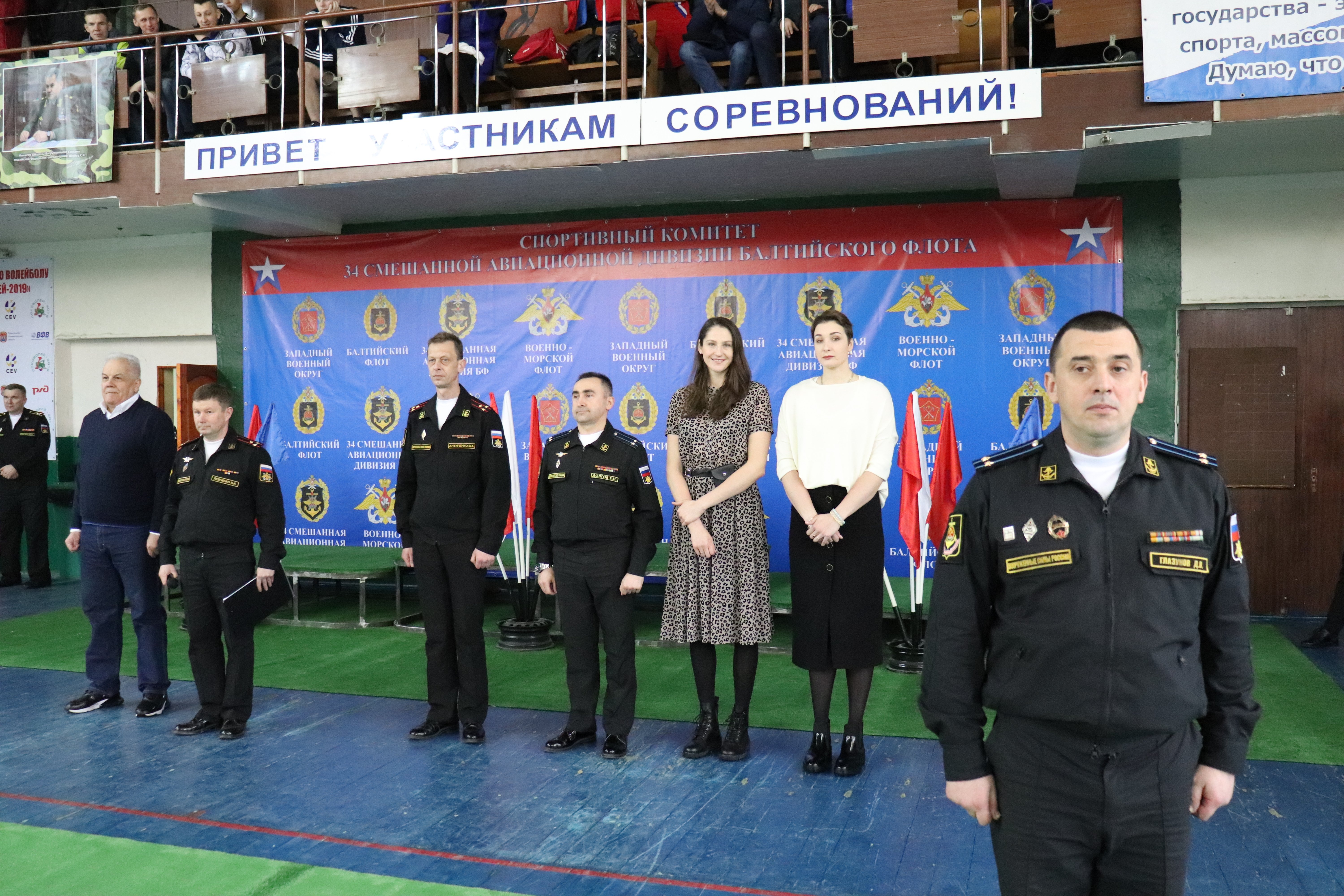 В торжественной церемонии открытия приняли участие и два игрока нашей команды – Ирина Воронкова и Татьяна Кошелева. Они поздравили моряков-волейболистов и организаторов соревнований с недавним Днём защитника Отечества, пожелали им хорошей игры, бескомпромиссной борьбы и, главное, обойтись без травм.